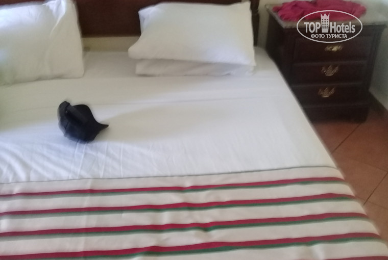 Отыхали всей семьей 4взрослых и один ребенок -1,5 года.Тур оператор ТЕЗ ТУР, приехали в отель в 9,00 ,через час одели браслеты,в 12,00 дали два номера,как и просили рядом и на первом этаже, недалеко от ресторанов рядом с бассейнами,4734 И 4735(ничего не доплачивали).номера отличные в одном душ(никаких проблем небыло ,что он вмантирован в стену) в другом номере ванна.сейфов нет и нестрашно .приспособились.ничего не пропало.уборка каждый день на отлично .пару раз благодарили шоколадом,вода и полотенце постоянно.тв есть русские каналы.кондиционеры работали. Ресторанов три обычных+ один китайский(один раз бесплатно)бар на рессепшене+возле бассейна(с завтроком обедом ,полдником,ужином,+бесплатное мороженое в 17,00 всем желающим),бар большой на пляже с обедом с 12,00 до 16,00(ход дог.шаурма.гамбургер.картошка фри.спагетти.пицца.суп и салаты) кола ,фанта ,спрайт спиртное и напитки юппи+чай, кофе .Пляжи на выбор(нам немножко неповезло с погодой) Анимация на все 100% выкладывалась и на пляже и возле бассейна.Отдыхающие в основном Россияне .Украина .Беларусь и Германия .Местных отдыхающих небыло вообще. Как писалось ранее официанты пислуживают только немцам.это неправда.они прислуживают всем