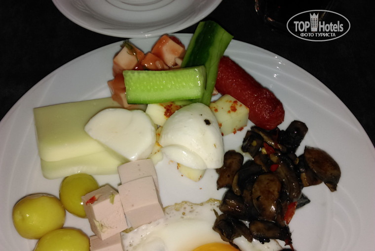 По питанию вопросов не было. Разнообразие большое. На обед и ужин всегда супы, пара видов рыбы, печень каждый день. курица, баранина постоянно. Всегда свежие овощи, сыры, на гарнир макароны, пюре, баклажаны, кабачки, фаршированные рисом, помидоры и огромное количество еще кучи всего. Клубника была через день в большом количестве, пару раз были арбузы, один раз ананасы, всегда яблоки, груши, апельсины. Десерты не ела, но выбор был большой. В баре около бассейна с 12 до 16 можно перекусить: картофель фри, наггетсы, гамбургеры, овощи, салаты. По дороге от бассейна к морю тётечка печет гезлеме. Вкусные. Посуда попадалась не промытая, я оставляла ее и брала другую. Места в ресторане находились всегда. К концу майских отель набрал дополнительно официантов, скорость уборки со столов сильно увеличилась.
