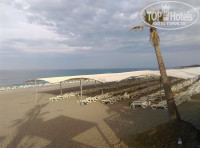 Пляж большой, сначала был песок, при заходе в море полоска гальки, два дня был шторм и из моря принесло много камней, думаю потом уберут. Мусора от туристов на пляже не было, персонал убирал. Пирс есть, но без лестницы в море, с шезлонгами. Шезлонгов на пляже много, матрасы, конечно не первой свежести, но вполне нормальные, не было занято и 30 %. Тенты есть.