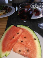 У пляжа есть бар. Там только вино, пиво, кофе. Какие-то закуски и фрукты.