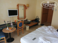 Номера стандартные, все с боковым видом на море, нам достался с видом на бассейн, вид хороший, однако прямо под окнами находился лобби-бар и по ночам там собираются шумные компании, хотя нам это спать не мешало, но для тех, у кого чуткий сон советую брать номер с видом на дорогу. Чувствуется что в номере был сделан косметический ремонт, все чистое и аккуратное, есть сейф, холодильник, убирают хорошо.