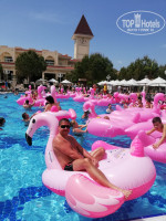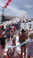 11 . Анимация взрослая – на 10 по 5 бальной шкале . Я не знаю как в сезон ,но МайФест отработала команда просто на ура . Своя анимационная команда обычная ,стандартные дневные развлекухи- волейбол ,водное поло ,боча ,стрельба и т.д. .На бассейне днем ежедневно что-то интересное – велосипеды водные были ,было классное фламинго-шоу с пенной вечеринкой ,танцами гоу-гоу в 10 !!! утра до 12 . Но а потом наступает вечер – и вот тут самое главное ,каждый день своя тематика вечера –Ганста ,90-е,Алькатрас,Неон и т.д. ,фантазия бурная у аниматоров .Все это сопровождается соответствующим антуражем ,декорациями и т.д. Все аниматоры в костюмах по теме вечера ,танцы до 24-00 .