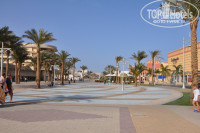 За территорией гостиницы (между Beach и acvapark) огромноая красивая променадная зона, которая простирается примерно на 1 км как вправо так и влево, с пальмами, магазинчиками и кафешками, что я вляется несомненным плюсом, так, как чаще всего за территорией гостиницы в Хургаде и выйти не куда, а здесь гуляй себе как в городе.