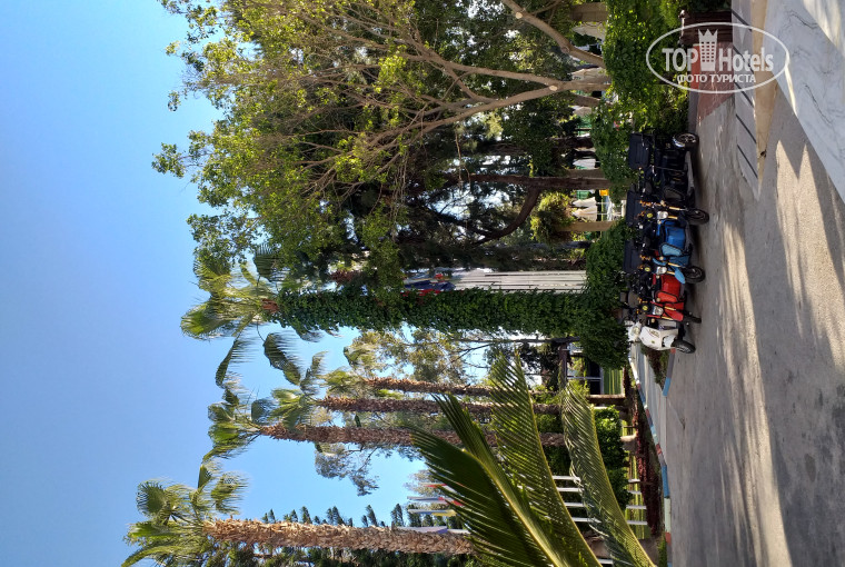 Так же начитались негативных отзывов об отеле, но всё равно рискнули сюда приехать. И в целом не прогадали. Да отель обветшал, но это единственное что может слегка расстроить. Территория отеля вся в зелени. Номера в основном корпусе приличные. Персонал заточен под русских и сразу предлагает номера с видом на горы и море(10-20$). На территории два бассейна для разного отдыха. В первом бассейне - анимация, музыка, бар в двух шагах, а второй с другой стороны здания - в тишине+горки. С лежаками проблем не было.