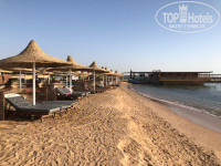 Классные зонтики, защищают от прямых лучей, но остаются маленькие просветы. Всегда достаточно шезлонгов. А если нет можно дойти до следующего пляжа который принадлежит отелю Алладин или пройти еще дальше на пустынный заброшенный пляж отеля Жасмин там очень мелки и нежный песок.