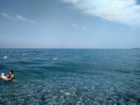 Море чистое но было прохладное. Вход без тапочек для взрослых терпимо. Отдельный пляж, есть мини бар (пиво и б/а напитки), лежаков хватало. До пляжа идти минут 5.