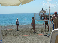 Территория: огромная территория, аквапарк с 3 горками, одна из которых имеет 4 дорожки, бассейны с морской водой, собственный пляж с волейбольной площадкой, теннисным кортом, футбольной площадкой. Бары на пляже, у бассейна.