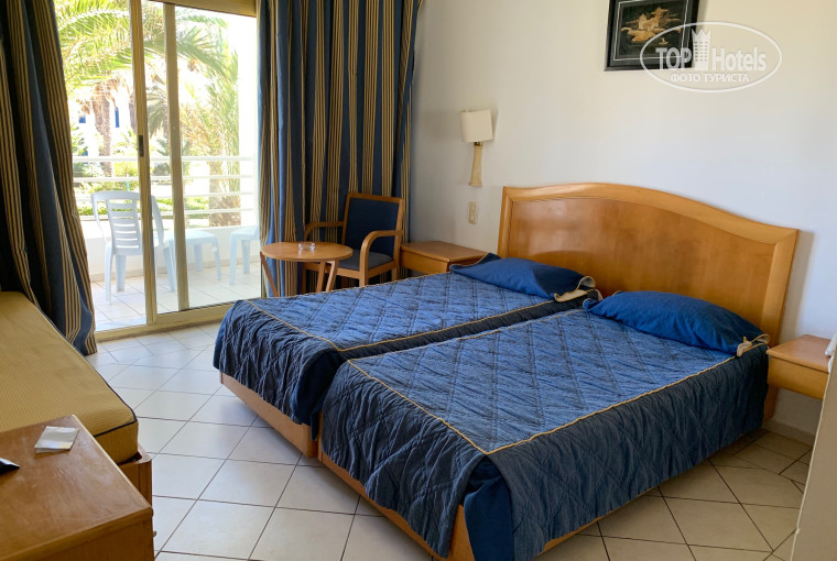 Номер выдали на первом (по нашему втором) этаже в середине правого крыла, вид на таунхаусы с кусочками моря и сбоку бассейн, на балкон заглядывала пальма - понравилось) В номере все работало (тв и кондей не включали), ничего не ломалось. Да, внешний вид поживший, как и матрас, но это специфика Туниса - все заюзанное, но аккуратное. В номере к слову только спали, мы ж на море приехали!)) Белье чистое, без дырок, меняли пару раз 2 недели, убирались каждый день. Пока на завтраке, уборщицы тырили у всех полотенца, свежие приносив через лишь пару часов. Оставляли пару раз чаевые в обмен на лепестки. Но в один из последних дней украли джинсовую рубашку, обнаружилось при сборах и сказал на ресепшене.