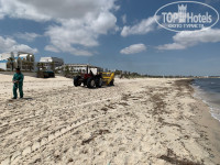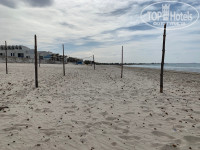 Пляж, море. Пляж с белым песочком, но местами водоросли, после легкого шторма его и берег реально загадило водорослями, которые не спешили убирать, да и чего, море прохладное, к концу отпуска в целом почистили. Так по берегу еще ездит трактор с сеялкой и чистят песок от водорослей. В сезон думаю на порядок ухаживают. Был прохладный ветер, который закончился к концу отпуска, когда и купаться было уже приятнее. Матрасы на лежаки пора бы выкинуть давно, но больше напрягало, что внутри мокрые, понять можно только полежав с полученным влажным полотенцем (их выдают под залог), а откуда не ясно, дождь был 1 день, может моют ночами. Горки временами включали для желающих.