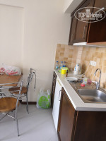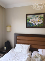 Номер: т.к. у супруга был День рождения во время пребывания в отеле, я заранее, еще когда приобретала путевку попросила турагента направить эту информацию в отель с просьбой предоставить просторный номер с видом на море. Нас заселили в 2хкомнатный номер на 2 этаж с мини-кухней, 2мя лоджиями, с одной из них было видно море. На мини-кухне есть чашки, ложки, нож, чайник, кастрюли, тарелки, стаканы, мойка. Правда нет плиты (зачем тогда кастрюли непонятно). Есть небольшой холодильник, ТВ с плоским экраном и русскими каналами. Ванная комната мне не понравилась, т.к. было очень темно, один маленький светильник над раковиной.
