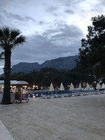Отель находится в очень красивом месте, восхищались каждый день. В главном здании огромное панорамное окно с видом на горы, просто прелесть! Много баров, что очень удобно, далеко ходить не надо. В лобби круглосуточный бар, спасение для таких как я, кто любит потусить подольше) Еда разнообразная, выбор настолько большой, что лень ходить и осматривать все. Очень вкусно готовили! Узнали что дают клубнику и раков, но не попали ни разу, тк приходили ближе к концу. Работает снэк бар с 12-16, там были бургеры и хот-доги, лепешки рядом жарили, мороженое там же. Голодными точно не останетесь!