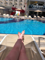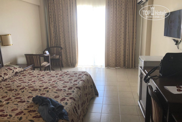 Отдыхали с молодым человеком в этом отеле с 18.05.2019 по 25.05.2019 г., отличный отель, осталось море впечатлений!)) У нас был ранний прилет, в отеле мы были уже к девяти часам утра, русскоговорящая девушка на ресепшене отдела на нас браслет и мы пошли на завтрак. После завтрака нас не просили ждать заселения до двух часов дня, а заселили сразу.!! Номер уютный, есть всё необходимое (телевизор, холодильник, фен, чайник). Уборка номера каждый день, полотенца тоже меняли ежедневно! Кормили очень вкусно - шведский стол, всегда всего хватало, если что-то и заканчивалось, то сразу же приносили новое! Бар работал с 10:00 до 23:00, на вкус всё хорошее, присутствуют такие напитки как - пиво, три вида вина (красное, розовое и белое), ракы, джин, спрайт, пепси, чай, кофе, три вида сока (апельсин, ананас и вишня) и айран. Так же в отеле мы попробовали кальян и нам очень понравилось вкусно и дымно)) стоил он 40 лир, ориентировочно 450 руб. Так же рекомендую попробовать хамам в отеле за 15$, не пожалеете, за эти деньги вы пройдете четыре процедуры. В самом отеле два бассейна с лежаками (взрослый и детский), бассейны чистят ежедневно! Вайфай бесплатный, работает нормально! Так же брали экскурсии у тур оператора (Анекс Тур), были на Эгейских островах и на Острове Клеопатры, обошлось на два человека - 80$, но это того стоит! Все пишут типо мол у отеля нет собственного пляжа, ну и что?! 5 минут пешочком и вы на пляже, во многих случаях лежаки на пляже бесплатные, либо нужно всего лишь купить какой-нибудь коктейль. Так же в местных ресторанах можно попробовать голубых раков по цене семечек, всего 5$. Персонал в отеле отличный, все дружелюбные, всегда обо всем расскажут, подскажут, покажут!) У нас осталось море эмоций и мы вернемся снова!