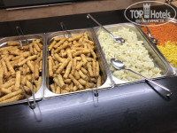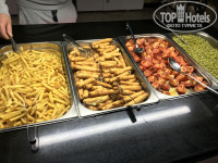 На обед всегда был крем-суп. Из мяса: индейка, курица, говядина. На гарнир: картошка, рис и макароны. Различные сладости, от которых просто разбегаются глаза, все очень вкусно. Различные салаты и просто нарезки. Салаты с тунцом. Фаршированные перцы, баклажаны. Куриные нагетсы. Клубника была каждый день на обед и ужин. Шашлычки. Рыба на гриле. Запеченная скумбрия. В Турецкую ночь готовили мясо на гриле (как в шаурме), очень вкусные были профитроли в шоколадном соусе.