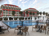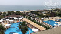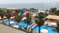 2. Территория: я бы сказала что ее вполне достаточно! Компактная, не тесно, все есть, лежаков полно и у бассейна и на пляже.Вход в море галька ( не очень приятно) но есть деревянный пантон, можно поплавать с него. Вечером он подсвечивается , красивые фото можно сделать . Бассейн во дворе, достаточно большой, глубина 1.40 м, есть водные горки.