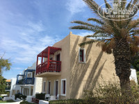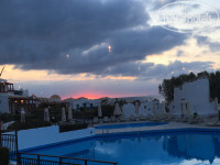 Отель - это большая ухоженная территория вдоль берега моря, оформленная в виде греческой деревушки. Множество двухэтажных белых и бежевых домиков, кажется, больше пяти бассейнов, водная горка, зелень, ароматы жасмина. Нас засели в домик на второй этаж, с видом на море, очень удобно расположенный - в двух-трех минутах от главного ресторана, главного бассейна и пляжа. Номер тоже выполнен в греческом деревенском стиле. Нам понравилось.