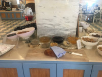 Что мне очень понравилось на завтраки - четыре вида каш, вариации из яиц - 7-8, наверное, далее йогурты, мюсли, выпечка, фрукты, ну и всё по плану как обычно везде. На обед/ужин также всегда был выбор (шашлычки из свинины, курица, баранина, кролик, индейка и т.д. и т.п.). Единственное, почему-то мало рыбы/морепродуктов. На протяжении всего дня в свободном доступе чай/кофе, холодильники с бутылочками питьевой воды, часов с 10-11 и до вечера пиво/вино, мороженое. С 12 часов накрывали у бассейна что-то плавно переходящее из завтрака в обед (причем это не хот доги и овощи, а реально полноценные обеды с детским меню, супами и проч., просто не успеваешь понять, только кажется позавтракал, опять вокруг еда). Была очень вкусная клубника, много, и лоточки с ней они постоянно пополняли. Вообще, всё, что заканчивалось, они постоянно приносили - новое.