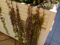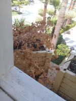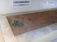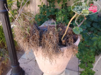 Территория огромная и очень красивая, но не ухоженная, везде вместо цветов сухостой. Благоустройство территории затеяли к июню. Начали стричь, полоть, подрезать, красить столы и стулья, основания зонтов, полы в кофе у пляжа, пилить, сверлить и т. д., осваивать заброшенные помещения. «Лежите и наслаждаетесь».