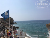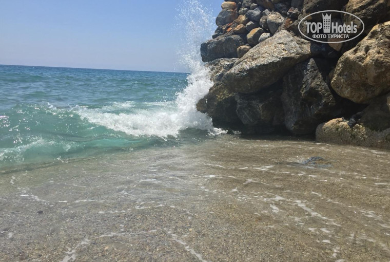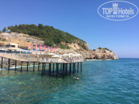 4. Пляж. Небольшой, но с очень живописными камнями и чистой водичкой! Вход большие камни, не очень удобно. Лежаков достаточно, просто из-за размера пляжа места там хватало не всем, для этого рядом есть пирс. Кстати если сравнить пирс Анжелика с пирсами соседних отелей, невозможно не заметить разницу, он намного больше и лучше обустроен. С пирса есть спуск в воду. Рядом есть дикий пляж, тоже неплох, вход в воду чуть лучше. На пляже есть снек-бар где можно подкрепиться и взять напитки, в том числе алкоголь, его кстати лучше не перебирать, пиво разбавленное и это чувствуется.