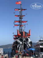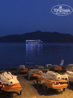 От аэропорта примерно 2,5 часа. Разместили быстро, отличный номер, отличный вид из номера, супер питание, супер хамам,а массаж ммммм, лучше пока я не знаю где. Русских в этом отеле 2%, остальные европейцы (англичане, немцы, шотландцы). Ездили с супругом. Единственное далеко от моря именно отельный пляж, мин 15 ехать на маршрутке, но оно того стоит, чистый,всегда шезлонги есть. В Мармарисе есть где погулять,красивая набережная, старая крепость,магазины.Претензий нет совсем. Все супер.