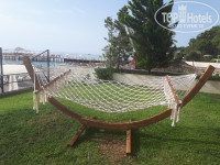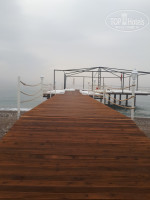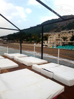 Дорога до пляжа 1 минута через дорогу или туннель. Территория пляжа не большая, но очень уютная, можно загорать где угодно: на самом пляже под тентом, на пирсе, также на пляже имеется бассейн с лежаками, душ. Проблем с лежаками я не заметила. Заход в море крупные и гладкие камни, у берега обустроено небольшое приспособление, чтобы зайти поглубже и сразу плыть, либо нырять с пирса.