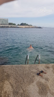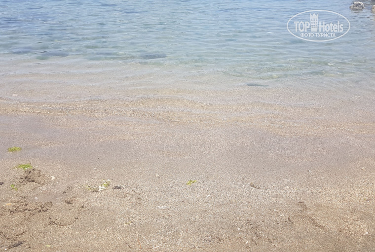 У отеля два пляжа один переходит в другой,есть спуск в море ,как в бассейне, по лестнице и сразу в глубину,тут многие плавают с маской и второй с пологом заходим ,на фото у меня заход в море со стороны Амели,песок с примесью мелкой гальки,при захода ближе к парадайзу бывают в море камни .