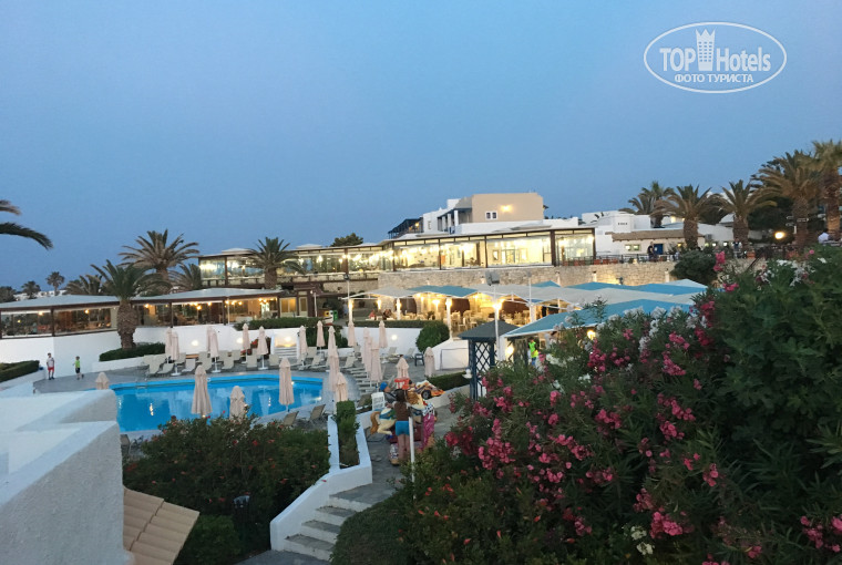 Территория очень красивая, много зелени и цветов, красивые белые домики в стиле критской деревни! Отель комфортный и приятный, все очень удобно расположено, в каждой части есть бассейн и бар.