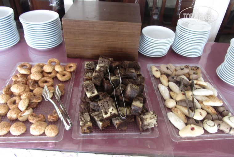 Питание в отеле довольно разнообразное. Фрукты давали 3 вида каждый день (арбуз,яблоки,апельсины). Если что-то заканчивается, приносят еще. Десертов 2-3 вида было на обед и ужин. На завтраки пекли оладушки. Омлет, хлопья, молоко. Разные салаты и овощи. Несколько видов сыра, местная соевая колбаса. На обед и ужин всегда супчики-пюре. На ужин курица, макароны, картошка, тушенная капуста и овощи. На полдник были очень вкусные печенюшки и кексы. Голодными точно не останетесь).