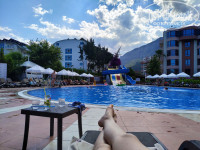 В отеле 2 бассейна. Один возле столовой, другой возле Pool бара взрослый+детский бассейн с горками.