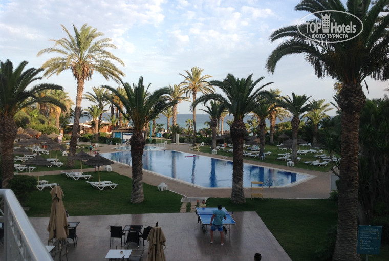 Территория ухоженная, красивая. Пляж очень маленький, чистый и песок белый. Нам не повезло с погодой. Море было очень холодное и ледяной ветер. Возможно не сезон. Полотенца выдают под депозит. 30 динар. Потом 20 вам возвращают. Берите свои. Лежаки надо занимать с утра. Полотенца никто не трогает. Но пустых лежаков после девяти не найти. Можно дать денежку мужичку, который выдаёт матрасы, и он вам принесёт и лежак и матрас и проследит, чтобы никто не занял ваше место.