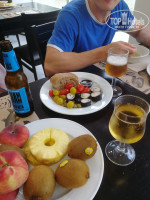 6. Питание. Мы выбирали отель с расчётом на то, чтобы можно было спокойно накормить ребёнка. Собственно, только поэтому и брали тип питания Al. Ассортимент блюд достаточно большой, но практически отсутствуют блюда на пару, отварные (только картофель и рис) или хотя бы запечённые. Все, даже овощи, жарится на масле. Каша на завтрак всегда только овсяная. В процессе общения с управляющей по поводу пикника, муж высказал все претензии по еде, и выяснилось, что можно предварительно заказывать персонально блюда. В общем, если ребёнок постарше и нет заморочек с едой, то проблемы нет. Но поскольку мы не считаем приемлемым ежедневное потребление картофеля фри, нагнетсов, пиццы и макарон, то нам с ребёнком этот отель не совсем подошёл. И поначалу как-то еда была поскучнее, а затем либо мы привыкли, либо действительно из-за наплыва испанцев (в честь праздника Сан Хуана) все стало гораздо интереснее))) Морепродукты были регулярно (всегда по пт-сб-вс, а среди недели - в тематические дни, например, кухня Средиземноморья - шикарные лангустины). Были и навахас, и мидии, и креветки, и кальмары, и паэлья с морепродуктами, причём как на обед, так и на ужин. Десертов было вроде и много, но представленных они пуддингами и бисквитами, украшенными взбитыми сливками. Ещё всегда стояли 2 блюда с просто взбитыми растительными сливками разного цвета. Поскольку для нас вкус растительных сливок отвратителен, то и десерты нам не понравились))) но это личное дело каждого, европейцы, коих в этом отеле большинство, активно налегали на РС)))