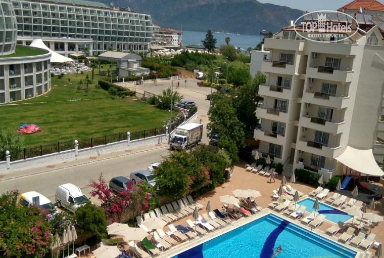 Отдыхали вдвоем с сестрой. Приехали из аэропорта в 11 утра, заселили сразу, не ждали до 12 часов. Достался вполне приличный номер 425, окна выходят на море. По еде: фруктов мало, в остальном питание понравилось было из чего выбрать. Понравился спа-салон при отеле, хозяйка Фатима приятная и доброжелательная, получили массу удовольствия от хамама и массажа. Совместили полезное с приятным, пройдя курс массажей, потрясающий эффект антицеллюлитный и воротниковая зона. Единственный минус - нет своего пляжа. Приходилось покупать дополнительно лежаки, в оплату входили напитки фреш. А вообще собираемся ещё раз приехать в конце июля.