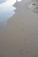 Сам пляж в 5 мин. ходьбы. Песок, при чем вполне чистый (не считая бычков изредка). С лежаками проблем нет, ходили после обеда, т.к. в другое время жарко- всегда находили, даже на первом ряду. Переодевалка, душ на пляже, а вот туалет только в кафе, до него надо идти метров 100 вверх.