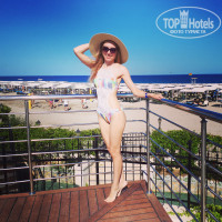 Приехали рано утром, отдали документы и сопроводительное письмо от Топ Хотелса (думаю это тоже сыграло роль), в 7 утра нам дали браслеты, сказали что наш номер еще не готов и мы можем пойти позавтракать, что мы и сделали, после переоделись и пошли на пляж купаться и загорать. Часов в 11 нас заселили, персонал был очень приветлив, это было наше свадебное путешествие. Номер маленький, но очень уютный, на 4 этаже в основном здании с потрясающим видом на гору. Было приятно что нам его украсили, чего там только не было: халаты, тапочки, шампанское, фрукты, даже мочалки, расчески и зубные щетки и еще много нужных мелочей, я такого еще нигде не видела.