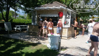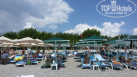 На пляже есть бар, работает с 11 до 13 и с 16 до 18. Всегда можно перекусить: собрать гамбургер, салатик; ежедневно что-то пекут прямо при вас – пиццу, лепешки с разной начинкой, делают шаурму, есть попкорн… Из напитков – 6 видов кофе из автомата, соки (концентрат), чай, пиво-кола-спрайт, вода из кулера. Успехом бар пользовался, мы в первые дни из любопытства попробовали все, потом же ходили в основном за водичкой, как-то наедались в ресторане и на пляже есть совсем не хотелось, разве что фруктики, которые брали с собой. В 16-30 на пляже мороженное: 1 в одни руки))). На пляже есть душ, переодевалка, туалет. Пляж убирается, много урн, но не все отдыхающие доносят до них свой мусор (((. За пляж – 5.