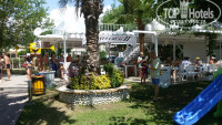 Территория отеля – ее практически нет: бассейн, бар, небольшая анимационная площадка. Но мы про это знали, поэтому не расстроились. Тем, кому принципиально наличие большой территории, просто не нужно рассматривать данный отель. Территория – 4, работа по поддержанию территории в чистоте, работа садовника – 5.
