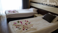 Номер не большой, вдвоем норм, втроем, думаю, было бы тесновато, но все номера такие, от этажности не зависит. Звукоизоляция – как всегда в отелях, но нам с соседями повезло – шумно не было. Кондиционер напротив кровати, но можно направить вверх, что мы и делали, работает как обычно, если вставлена карта (в ваше отсутствие, номер не охладит, как в Египте, например). Уборка сводилась к уборке мусора, замене полотенец и выкладыванию фигурок из них. Насколько мы замечали, пол не мылся, или мылся крайне редко, пыль не вытиралась вообще, во всяком случае у нас на этаже было так. Здесь - замечания персоналу! За номер – 4, уборка – 3-.