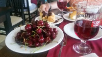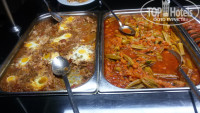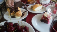 Обед и ужин. Очень много мясных блюд: были говядина, ягненок, курица, индейка. Из этого и гриль, и рулетики различные, и мясо, фаршированное овощами… Так же всегда были или печень, по разному приготовленная, или язык. Разные котлетки-наггетсы (не брали). Огромный выбор блюд из овощей, - вкуснотища!!! (пару раз попадались ооочень острые((( на любителя). Из рыбы – речная форель, обычно на ужин, гриль. Также была сельдь и какая-то мелкая рыба и жареная, и в кляре, и тушеная. Из гарниров - вкусный рис, булгур, паста разных видов(не брали вообще, по вкусу ничего не скажу, но народ брал активно), картофель: фри, тушеный с мясом, иногда было пюре. Много свежей зелени, из свежих овощей – помидоры черри и обычные, орурцы, морковь, редька, свекла…Изобилие фруктов: нектарины, персики, арбузы, дыни, черешня, абрикосы, груши, яблоки, очень вкусные апельсины, грейпфрукт, в конце нашего отдыха появился виноград, а в начале июня была и клубника(мы не застали). Все пополняется. Всего хватает. Мы всегда приходили мин через 40/час после начала трапезы – всего было с избытком. Пару раз для интереса пришли к началу – толп страждущих не обнаружили, разницы в блюдах тоже. Единственное (если вы сладкоежка), то через час может не остаться торт. Хотя он довольно большой, но размер кусков, которые набирают отдыхающие и себе и детям – это что-то… И количество профитролей, которое берут вместе с тортом на каждого(((, а потом все это выкидывают. Если бы не жадность отдельных товарищей, торт ежедневно доставался каждому. Но остаются много других различных десертов – пирожных много. Мы к ним равнодушны. Торт попробовали - да, вкусный. Но уходить из-за него с моря на час раньше – ни за что!!!