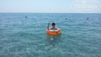 Пляж находится в 5 минутах от отеля, через небольшую дорогу с крайне редким движением, - за это можно не беспокоиться. Пляж понравился – широкий, рядов 9-10 и еще довольно большое место до самого моря и по длине не маленький. На 1 зонт 2 шезлонга. Шезлонги расположены на расстоянии друг от друга – есть возможность маневра (прятаться от прямых лучей турецкого солнышка). Мы – любители моря, в бассейне были 1 раз по необходимости – чтобы не потерять время плавания, ожидая встречу с гидом. На море приходили после завтрака, часов в 8, куча свободных мест, но и те, кто приходил в 9/10/11 без проблем находили место, а отель был заполнен полностью. Сам пляж – мелкая галька, вход в воду – довольно крупная галька и без спец обуви будет не комфортно, хотя были и те, кто заходил без кораллок (смотреть было забавно). Если не привезли с собой – базарчик в помощь! И уже метров через 4-5 глубоко.