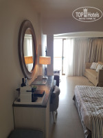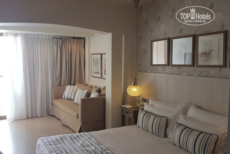 Отдыхали семьей с ребенком 5 лет во второй половине июня. С погодой крайне не повезло. Были сильные затяжные грозы и похолодало до 21. Но пребывание в этом чудесном отеле сгладило всё. Номер был junior suite с видом на море в корпусе В. В номере есть все необходимое: гладильная доска, утюг, фен, кофемашина с капсулами. Каждый день приносят воду бесплатно и пополняют кофейно- чайные принадлежности. Пожалуй, только биде нет. Единственный существенный минус номера - это чудовищная слышимость. В ванной в потолке есть решетка. Видимо, такая же есть в соседнем номере. Через нее слышен каждый звук. Приходилось дверь в ванную плотно закрывать. Но все звуки в коридоре тоже отлично слышны через входную дверь.