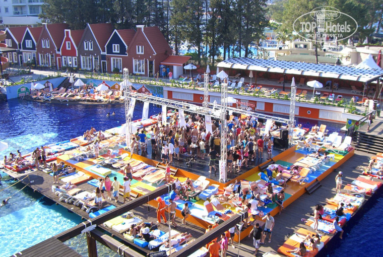 Ребята, только что оттуда! Отель бомба!!!! Для тех кто хочет спать и отдыхать в тишине аллей- явно не сюда! Брал сингл с видом на море- Бешеннейший вид! Отель- сплошная движуха. Утро, выхожу на балкон - вид на бассейн и дискотеку- идёт утренний ланж, врубают джази ты балдеешь на лежаке, далее на пляже разогрев, после вечерний разогрев на диско всё это сопровождается с раздачей в нереалных количествах коктейля "секс на пляже", потом живой концерт в гранд кафе, далее дискач! Куча молодёжи. Тусовка, позитив и прочее. Работают промоутеры от дискотеки Аура- вход по их флаерам бесплатный. Питание- мне всего хватало. Явно ехал не борщи хлебать, а так насладиться кухней и выпивкой, правда много взял с собой. Более всего радует дискотека на пирсе с пенным финалом))). Ай красота. Вообщем кусочек Европы на Турецком берегу даёт офигенные ощущения. В Сентябре только туда!!!