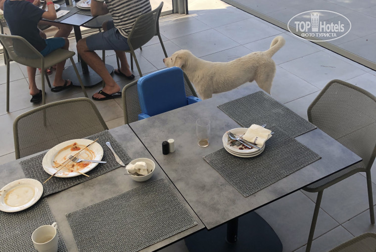 На мои Регулярные обращения к администрации отеля , чтобы они как-то контролировали присутствие бродячих собак на территории, не допускали их в столовую , к детскому бассейну и тд ,администрация отеля отвечает, что греки очень любят собак , видимо, гораздо больше чем своих гостей, И никаких мер принято не будет. Нам с ребенком посоветовали переехать в другой отель!