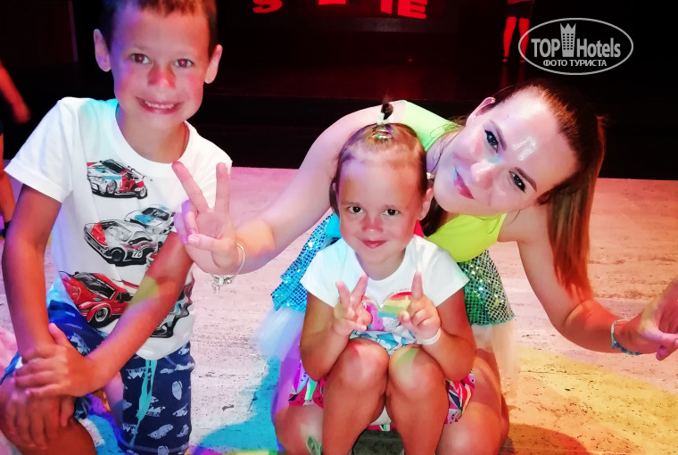 Ездили компанией, двумя семьями ( 4 взрослых, 4 ребёнка). По прилёту в аэропорт, сотрудники турагенства встретили у автобуса, по приезду в отель, сопроводили до ресепшен, что очень приятно. Приехали мы рано утром, около 6.30. Заселение было в 14.00 только, можно было и раньше, конечно, за доп.плату, предлагали фэмели номер, но у нас был заявлен стандарт, поэтому переплачивать мы не стали, а пошли позавтракали, потом переоделись на территории хамам, оставили вещи на ресепшен и пошли к бассейну,а потом и на море. Пришли к обеду, покушали и спокойно получили свои ключи от номера, пошли отдыхать. Номера нам достались в главном четырехэтажном здании, на первом этаже, что очень удобно с детьми, так как лифта в корпусе нет. Номер стандарт, довольно таки комфортный, в меру просторный. Даже не стали просить детскую кроватку, так как на двуспальной вполне 1 вз и 2 ребёнка поместились. В номере 2 спальных места (двухместная и одноместная кровати), холодильник, тумбочка, небольшой стол, стол с зеркалом, телевизор, стулья, в сан.узле ванна, большое зеркало, фен и мыло+шампунь (мини упаковка). Балкон с видом на горы, вид шикарный, даже с первого этажа. Сервис - уборка ежедневно, но не всегда своевременно, пару раз было приходили уже после обеда, а так и не убрано, приходилось вешать табличку "не беспокоить", так как спали дети. Смена полотенец тоже во время, если нужно прям срочно, то можно попросить и вам заменят. Питание. На самом деле (читая отзывы) думали будет хуже, НО на деле оказалось вполне достойно, каждый мог выбрать для себя из предложенных вариантов что-то по вкусу. Много фруктов, сладостей тоже достаточно, много овощей, зелени. Мясо в основном курица, в разных её вариантах приготовления, частенько была рыба, желудочки. В общем ни взрослые, ни дети голодными не были, каждый мог подобрать себе что-то по вкусу. Территория. Она относительно небольшая, но ооочень зелёная за ней ежедневно и круглосуточно ухаживают (поливают, ровняют кусты, подметают и тд). На территории есть небольшая детская площадка, с горкой, 2мя качелями и небольшое здание мини-клуб, где с детками занимаются. Бассейн один взрослый с горкой и один маленький, лягушатник тоже с горкой. Лежаков, всем желающим у бассейна не хватало, но никто не возмущался, также сидели в креслецах рядышком или за столами. Лично я ходила занимала рано утром (меня это совсем не затрудняло) 4 лежака на 2 семьи около детского бассейна, так как с 4 детьми нам было удобно. АНИМАЦИЯ!!!! ЭТО ОТДЕЛЬНАЯ ИСТОРИЯ ОТЕЛЯ!!!! О которой хочется сказать, что ребята и девчонки из команды "L'team" просто те, из-за которых хочется возвращаться в этот отель снова и снова!!!! Настолько доброжелательные, общительные, позитивные и всегда улыбчивые. Ни взрослые, ни дети не будут скучать это точно, хотите танцы, пожалуйста, на ваш выбор танец живота, сальса, зумба и тд, хотите спорта, тоже выбирайте на свой вкус, дартс, боча, водное поло, утренняя гимнастика (с элементами йоги), аквааэробику, пейнтбол. Девочки ЮЛЯ, ТОНЯ, ОЛЯ и КАТЯ не дадут вам скучать. Ну и о детской анимации, КАТЯ - это кумир всех детей отеля. Это человек с таким зарядом энергии, что она раздаёт его, мне кажется каждому. Её мини-диско, просто аншлаг, что даже взрослые не могли устоять и танцевали вместе с детьми! Вечерние шоу, всё тоже их заслуга, конкурсы, организация и атмосфера праздника, веселья - это 