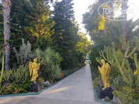 Территория зеленая, красивая, но небольшая, почему многие пишут, что большая? Все движение сосредоточено вокруг главной аллеи, ведущей от главного корпуса к морю- бассейны,горки, бары, корпуса. Пирс большой и красивый, пляж тоже большой. 70% занятых с утра лежаков пролеживают необитаемыми весь день, но это болезнь отдыхающих.Много мест, где можно сделать красивые фото, беседки, статуи, цветущие розы и много флоры.