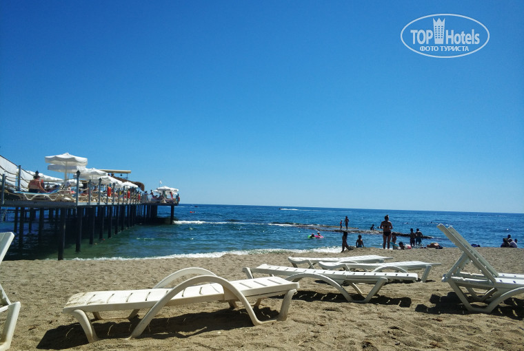 Пляж свой. Лежаков много, но всегда есть одно "но" - это туристы которые занимают своими полотенцами лежаки возле моря и возле бассейна. Отсюда и возникают вопросы, что кому- то не хватает.