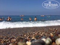 Море чистейшее. Берег песчаный, при входе в море начинается галька. Не всегда комфортно входить, но привыкаемо + пятки потом как у младенца. Еще можно решить проблему с галькой покупкой спец обуви. Там таких много. Лежаков много, позагорать не проблема.
