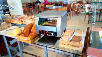 Кухня заурядная, ни о каких 4+ говорить не приходится, ни одно блюдо не подписано и приходится его идентифицировать только визуально . Здесь ничего не пропадает, что не доели горячим переходит в холодные закуски, а затем в салат. В обед и ужин длинные очереди в столовке (рестораном это назвать трудно). Через час после начала приёма пищи заканчивается не только, например, курица или говядина, но и некоторые блюда. Вкусно готовят овощи, но через четыре дня они уже не впечатляют. Иногда в обед нет курицы или говядины, но всегда есть рыба - и это пангасиус в 95% случаев всей продаваемой здесь рыбы. Детского меню просто нет, а за картофелем фри или гамбургером встраивается очередь, ведь их подают здесь только раз в неделю. Барбекю делают на ужин два раза в неделю - это курица и говядина, так же в это время один раз готовили бесплатные коктейли, но их хватило только на 10-15 минут, пришёл позже коктейля нет. А приедешь к открытию стоишь в очереди за едой. Вот и решай или стоять, или не стоять в очереди, но всего не хватит. Паста неплохая, варёные яйца дают 1 раз в неделю, а масло сливочное появилось только на 8 день отдыха. Выбора фруктов можно смело сказать, что нет. На каждый прием пищи в основном один вид фруктов. Всегда есть дыня, два раза в неделю давали на ужин только арбуз, несколько раз был апельсин, но это как повезёт или сочный или совершенно сухой, два раза был виноград и несколько раз резанные бананы в сиропе, один раз давали mix – дыня, виноград, банан и это все за 11 дней отдыха. Поэтому мы закупали себе фрукты в Carrefour - виноград, инжир, манго, сок гуавы ведь в отеле соков нет только Yupi! В данном случае подходит выражение голодным не останешься, но выбора нет! И не удивляйтесь несвежей выпечке или пирогам с наполнителем из сухих завтраков.