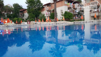 Территория - "прелесть", небольшая, всё компактно, всё есть, рационально, чисто, красиво, ухожено. 5 бассейнов (1 детский с горками, 2 c "лягушатниками", 1 с горками, 1 под нависающей крышей - "класссно" в жару!-тенёк.