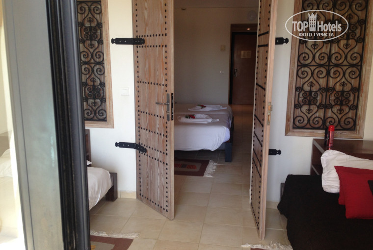 Прибыли в составе:я с ребёнком 11 лет и старший сын 24 года; подруга с сыном 12 лет. Разместили нас быстро,по прибытии угостили коктейлями "Сентидо Джерба Бич". Но т.к . подругу поселили на 1-м этаже выйдя на балкон, который переходит в отельную территорию, она решила быстро поменять номер на этаж повыше (за небольшое вознаграждение). Получила номер выше этажом.