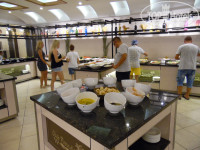 Еда достаточно разнообразная. Каждый день фрукты, салаты, овощи, мясо самое разное, птица(кура и индейка) рыба. Местные супы конечно разочаровали, очень перченые. Десерты вообще просто восторг))) В целом едой остались довольны.