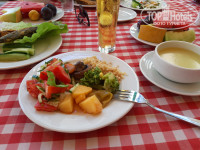 Питание хорошее, все есть. Курица, рыба, какие то колбаски и т.д. Овощи, фрукты, сыры, голодными не останется никто. Разрешают тащить в номер особо голодающим. Очень серьезный администратор ресторана, помог не раз найти столик. Народу в этом отеле очень много. Шум и музыка будет постоянно и в ресторане и на улице, где бар. Напитки есть разные, пиво хорошее, кофе, чай и т.д